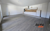 La cuisine ouverte, moderne s'intègre harmonieusement au salon, pour créer un ensemble convivial et fonctionnel.
