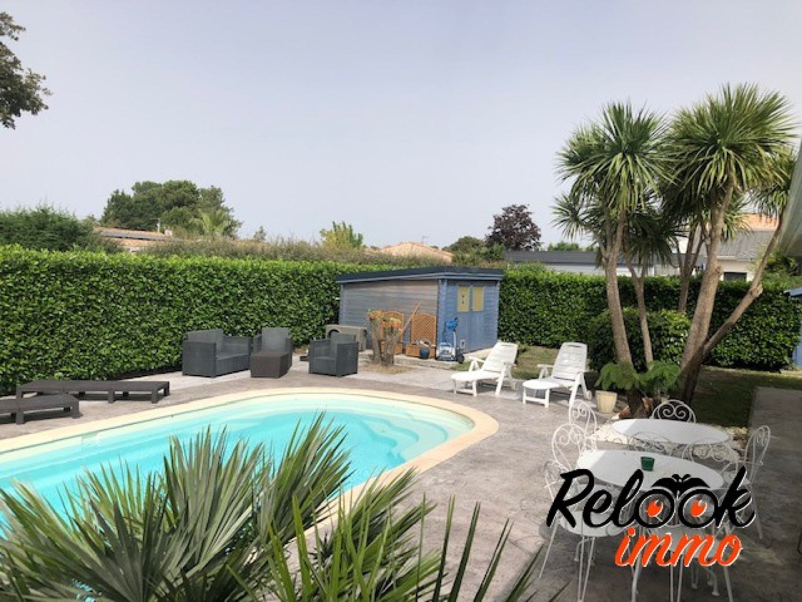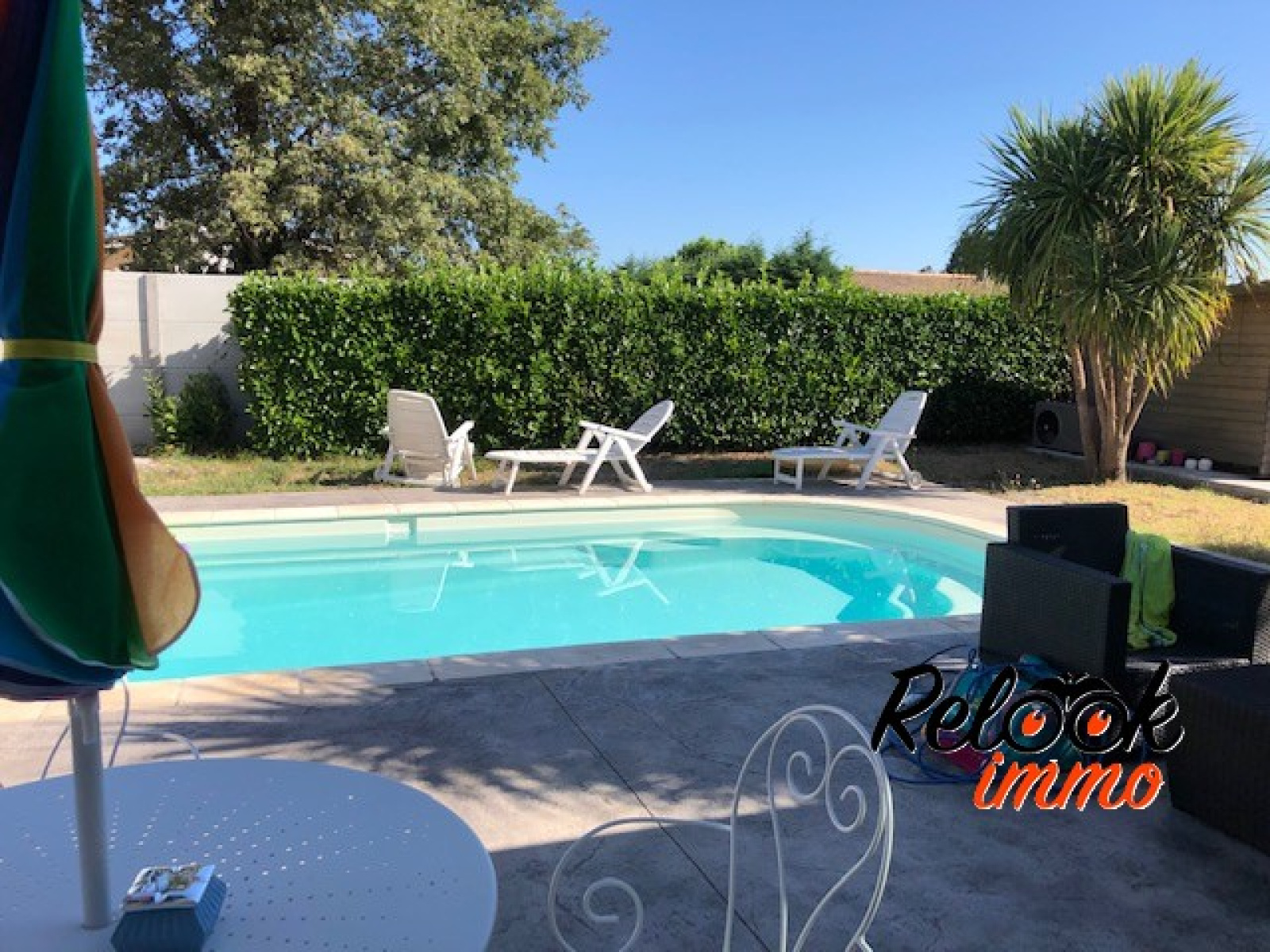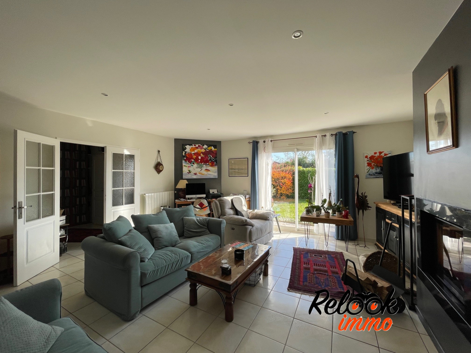 Maison de plain-pied d'environ 160m², lumineuse et agréable, constituée d'une entrée, un vaste séjour avec cuisine aménagée et semi-ouverte, un cellier avec pompe à chaleur, une véranda ouvrant sur la piscine, 4 chambres dont une avec salle d'eau, salle d'eau indépendante et 2 wc. Garage attenant.