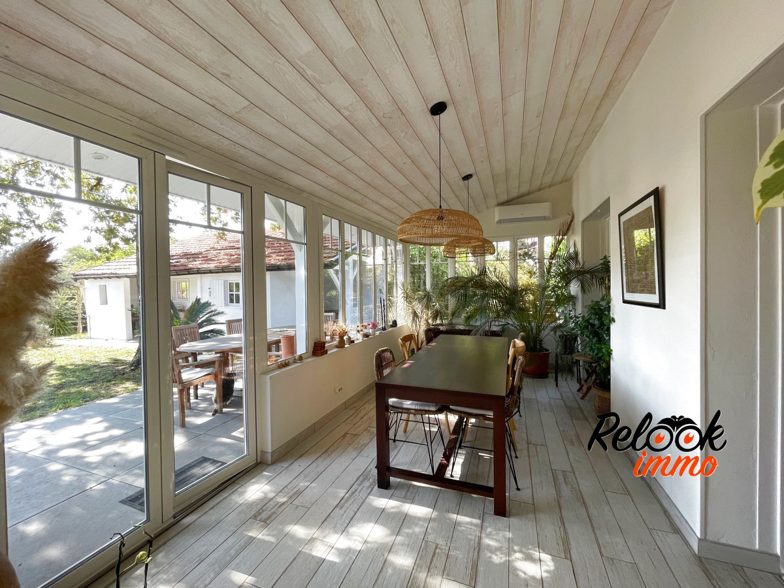 Elle comprend un salon avec cheminée d'environ 35 m² , une cuisine aménagée et équipée ouverte sur une très belle pièce à vivre entièrement vitrée, style jardin d'hiver de 26 m², une chambre parentale de 17 m² avec une belle salle d'eau. A l'étage une 2ème chambre parentale de 15 m² avec sa salle d'eau-wc privés, et une 3ème chambre de 11 m² à cloisonner, actuellement utilisée en espace bureau ouvert.
