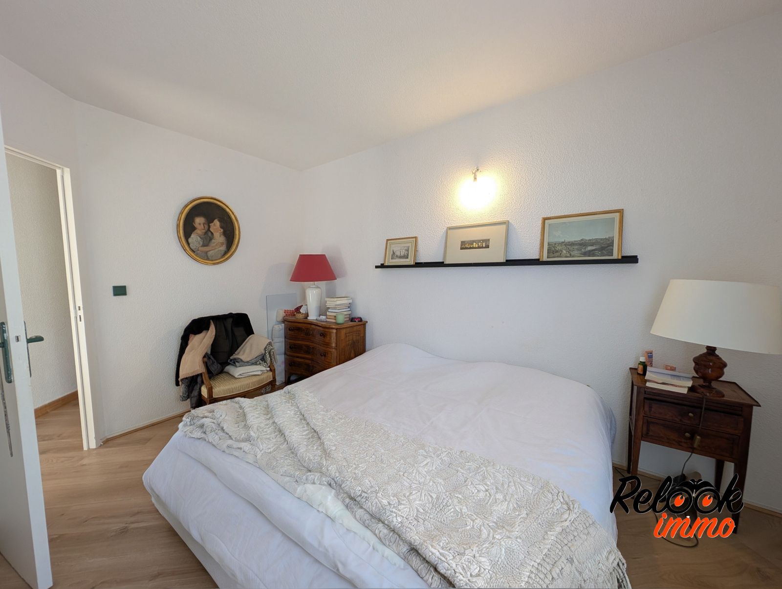 Situé au premier étage avec ascenseur d’une résidence de standing construite en 1990, ce bien développe une surface de 58,47 m² loi Carrez, complétée par un balcon de 5,60 m² exposé Est, offrant une belle luminosité et un agréable aperçu sur le Bassin.