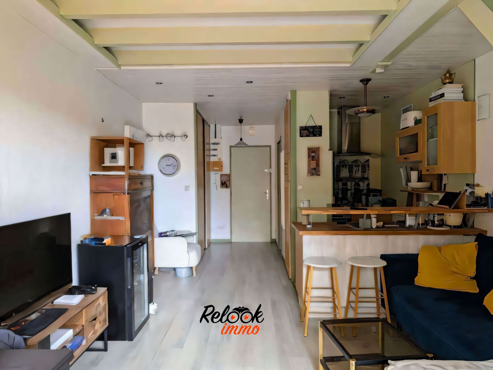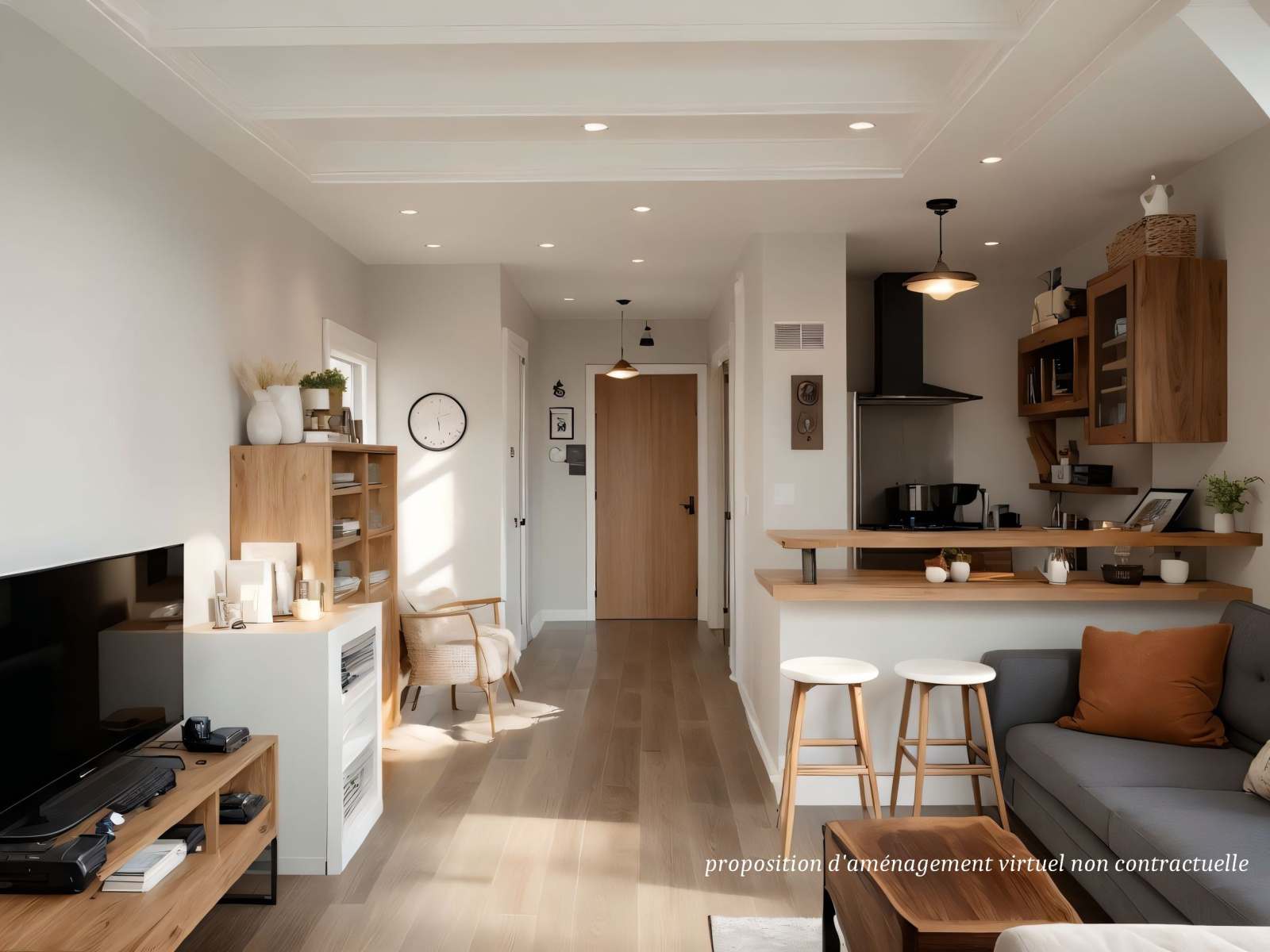 Il se compose au premier niveau d’une entrée avec placard, d’un séjour lumineux donnant sur une terrasse de 9 m², d’une cuisine aménagée et équipée ainsi que d’un WC indépendant.
